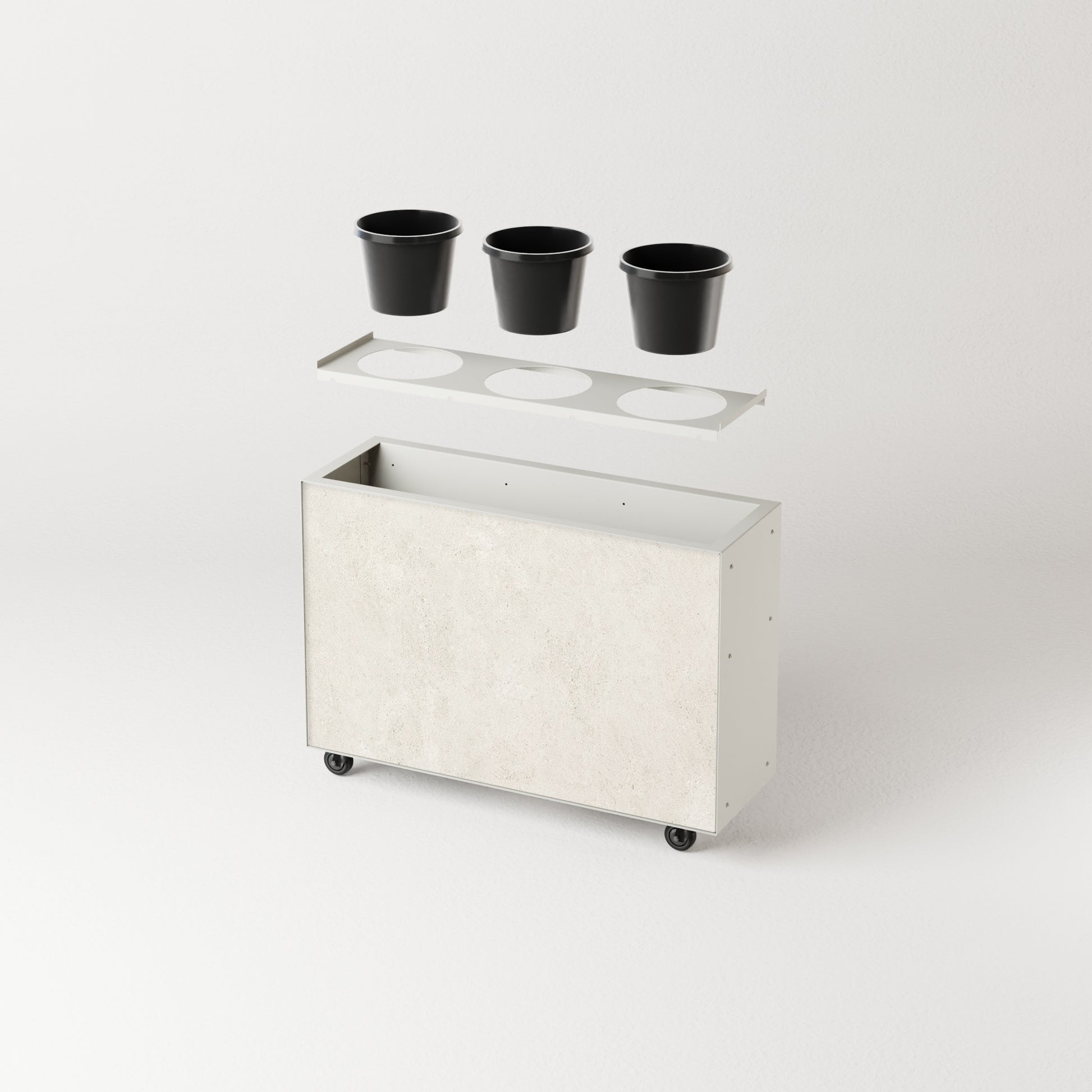 Supplied on black lockable castors and with a raised internal planting shelf this planter is perfect for potted or artificial plants.